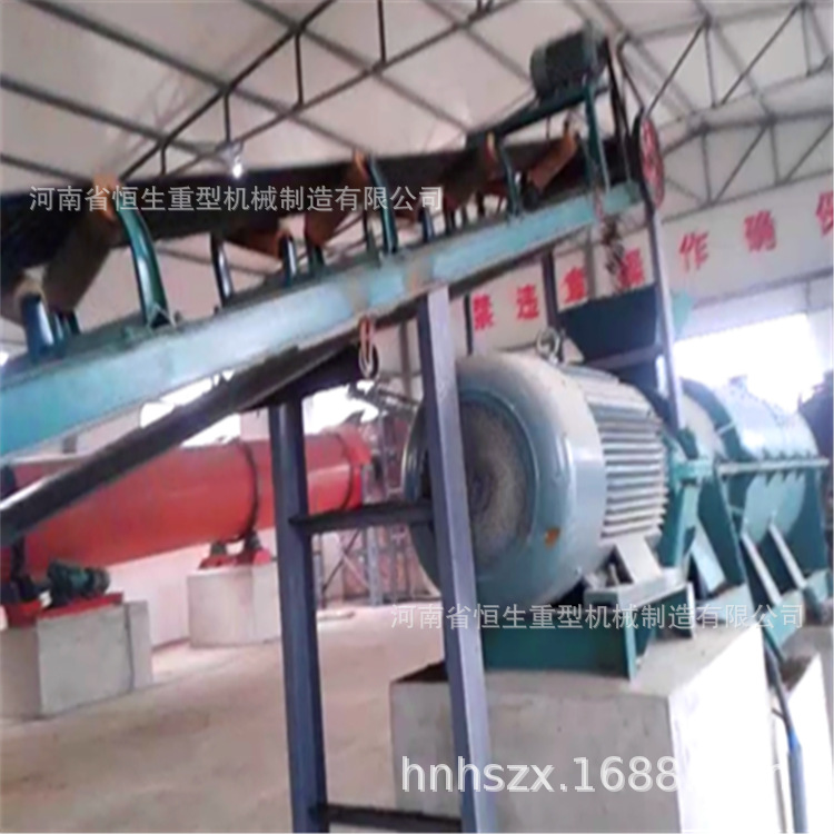 中配置:发酵翻抛机、半湿物料粉碎机、卧式搅拌机、造粒机、烘干机、冷却机、滚筒筛分机、包装设备、皮带输送机等。
