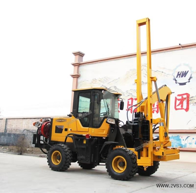 装载机式护栏打桩机是恒旺集团根据市场需求和自身技术成熟的情况下向客户需求而研发的一款产品,是集装载、打桩、钻孔等功能为一体的新型产品。采用全新设计理念、精心研制整体功能,结构模块化兼顾的设计思想,全封闭各木式安装结构,更利于产品快速安装和转场,可广泛运用于公路、高速等路面护栏的桩孔钻进工作。